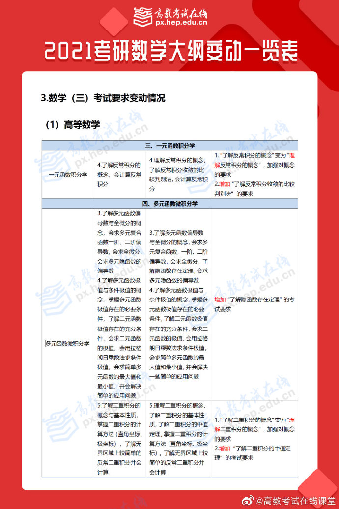 考研数学大纲已出,一起来看看今年的数学(三)大纲到底哪里有变化吧