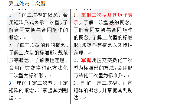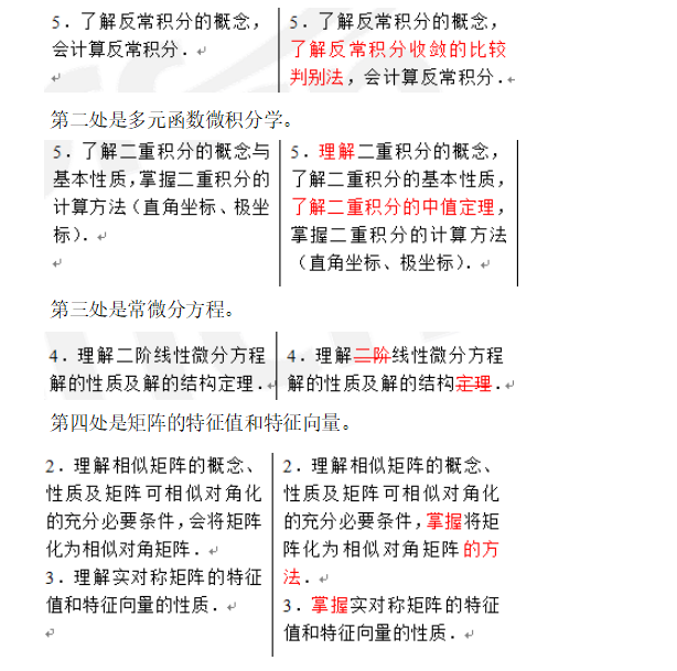 与2020年考试大纲相比,在考试要求及考试内容上2021年的考试大纲只有五处变化。(左栏为2020年考试大纲,右栏标红处是2021年考试大纲变动)