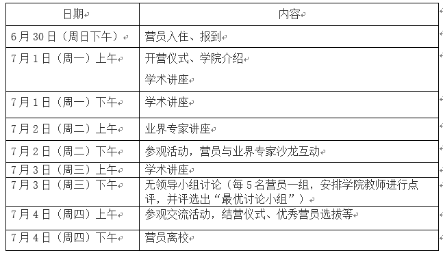 四、夏令营活动日程安排