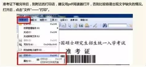 6.准考证下载完毕后,到附近的打印店,建议用PDF阅读器打开,否则容易出现文字缺失的情况,打开后,点击文件打印。