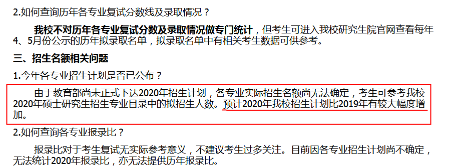 南京邮电大学:根据国家教育部相关政策,今年国家将扩大硕士研究生招生规模,新增硕士生招生计划主要以全日制专业学位为主。我校将在2020年拟定招生人数的基础上适当增加研究生招生计划。