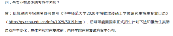 华中师范大学:统考招生名额后期可能因国家正式招生计划下达和推免生实际录取产生变化,具体名额将在复试前,由各学院在其复试方案中公布。