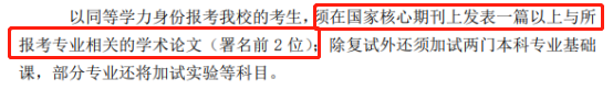 要求在省级以上刊物以第一或第二作者身份发表专业内论文,或在报名时提交一篇论文。
