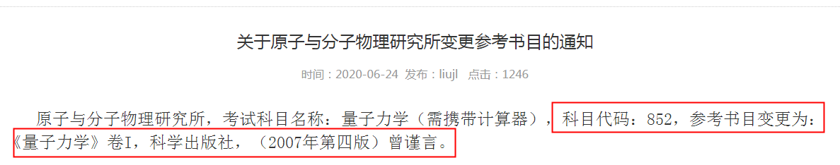 吉林大学原子与分子物理研究所,852量子力学参考书目变更为:《量子力学》卷Ⅰ。