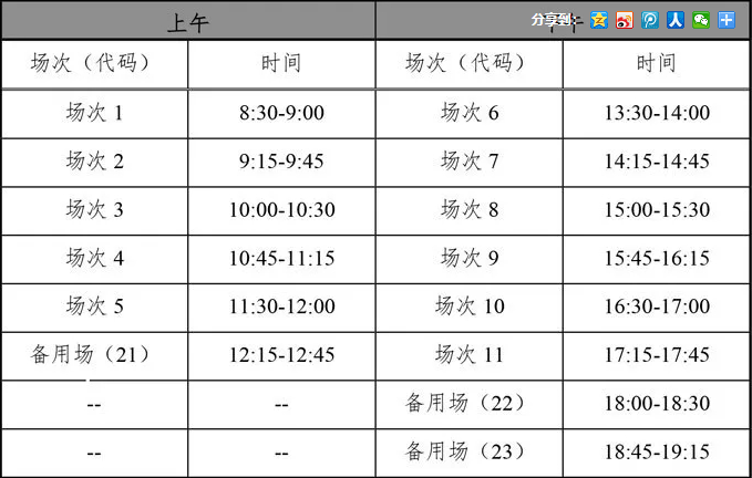(CET-SET6)考试时间为11月22日(S204次),具体场次安排如下: