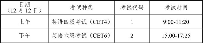 笔试开考科目为英语四级和英语六级,考试时间为12月12日。