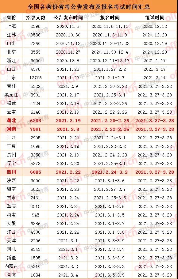 历年来,河南省、四川省、湖北省同为上半年多省公务员联考省份,笔试时间同为一天,如图所示: