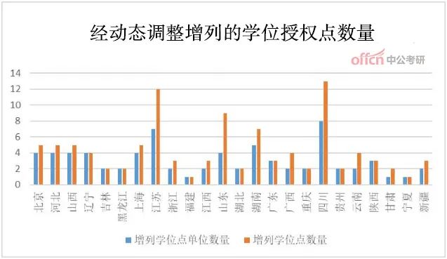 近日,教育部发布《国务院学位委员会关于下达2020年审核增列的博士、硕士学位授权点名单的通知》。在学位授权审核结果中:新增1500多个硕士点,其中专硕占了1115个,占比高达70%以上。经动态调整增列的学位授权点(分省)中,四川省增列授权点数量最多,增列学位授权单位8个,学位授权点13个;其次是江苏省,增列学位授权单位7个,学位授权点12个。