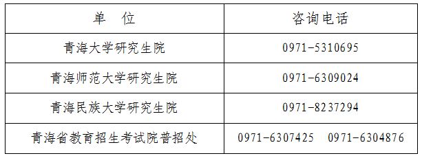 (五)研考研招相关信息,请考生密切关注研招网、青海省教育招生考试院官网(www.qhjyks.com)和以下微信公众号:研招网、学信网、青海省教育招生考试。