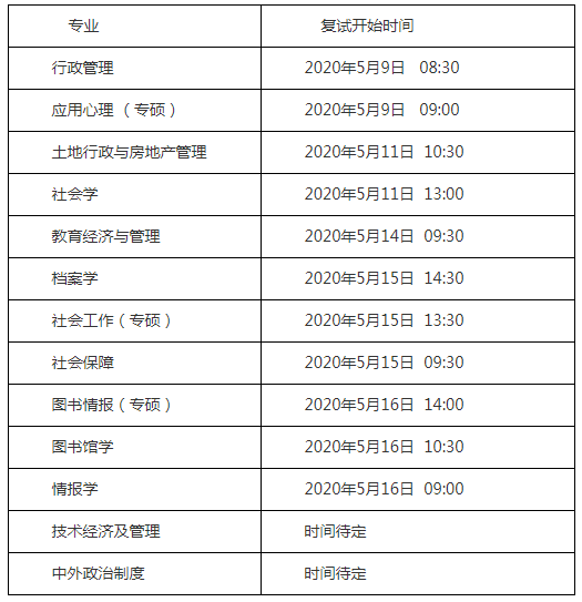 2. 复试时间如下: