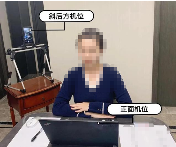 4.满足双机位,一个摄像头全面呈现复试环境,一个摄像头用于复试。示意图如下: