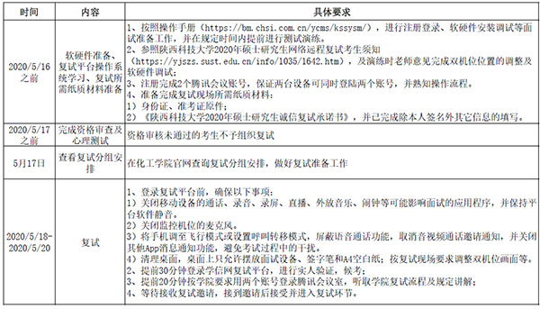 我校将在新生入学后3个月内,按照《普通高等学校学生管理规定》有关要求对所有考生进行全面复查。复查不合格的,取消学籍;情节严重的,移交有关部门调查处理。其他未尽事宜请查看《陕西科技大学2020年硕士研究生网络远程复试考场守则》。