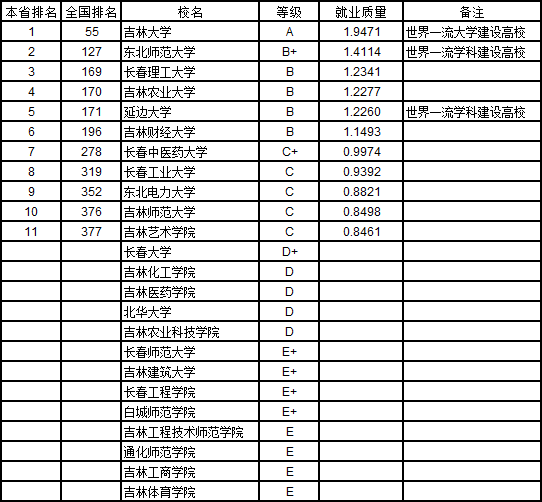 2019年评价吉林省24所普通本科大学,吉林省大学本科生就业质量0.8640,国第16名。