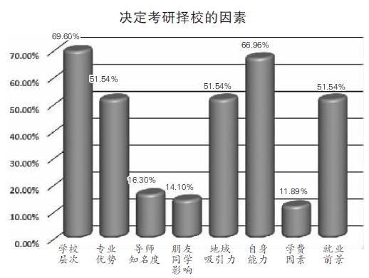 从考研择校的因素来看,学校层次是考生首要考虑的择校因素,其次考虑的是自身能力,第三则是职业优势、地域吸引力和就业前景。