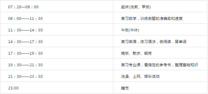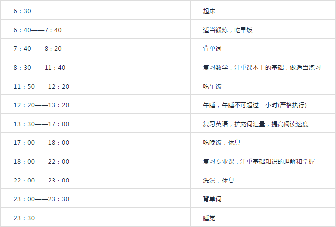 每个同学要根据自己的实际情况,制定适合自己的作息时间表,并严格执行。这样才能保证好的精神状态和复习效率。