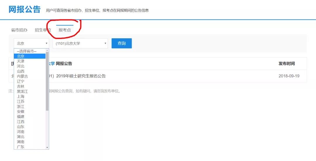 怎么查这些信息呢?看研招网各个院校的网报公告(如下图),同样想要在非户籍所在地考试的同学,也看研招网上该考点的网报公告,如果你能提供该地区要求的相关证明,那你就可以在该地考试。(http://yz.chsi.com.cn/sswbgg/)