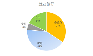 除了对跨专业考生友好之外,法律专业的就业也很不错。接下来,请大家看法律专业同学的就业去向。