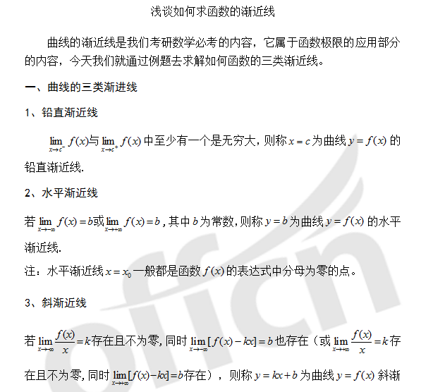 以上是四川中公考研小编为您整理的“考研数学:浅谈如何求函数的渐近线”相关内容,预祝每位考生考试顺利。