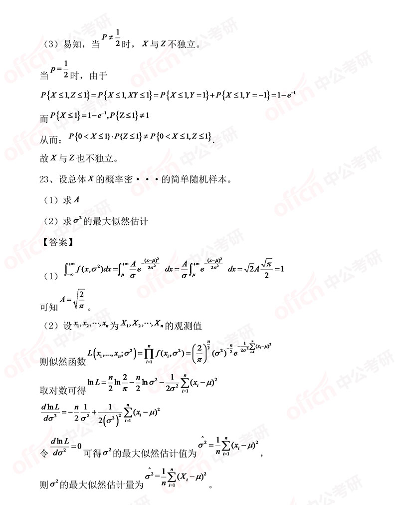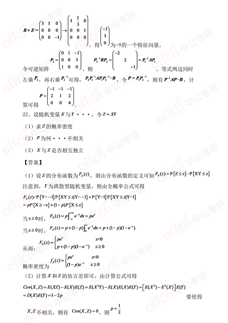 以上是四川中公考研为大家准备整理的“2019考研数学三选择题21-23试题及答案解析 ”的相关内容。