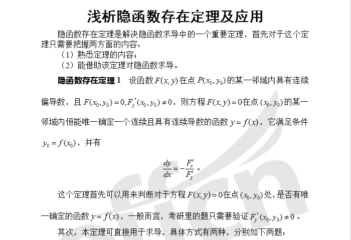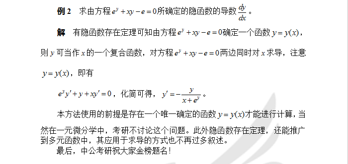 以上是四川中公考研小编为您整理的“20考研数学:浅析隐函数存在定理及应用",预祝每位考生取得好成绩,更多考研常识相关内容尽在四川中公考研数学栏目,中公考研为广大学子推出乐学面授课、VIP一对一等系列备考课程,针对每一个科目要点进行深入的指导分析,欢迎各位考生了解咨询。同时,中公考研一直为大家推出考研直播课堂,足不出户就可以边听课边学习,为大家的考研梦想助力!