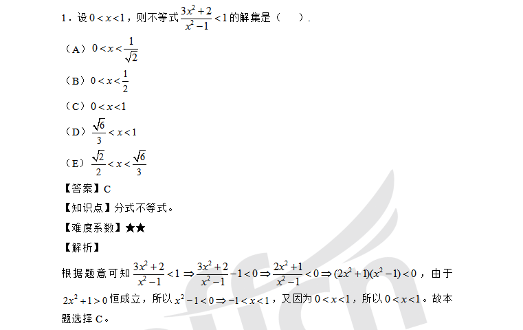 以上是四川中公考研小编为您整理的“20考研管综初数:分式不等式每日一练",预祝每位考生取得好成绩,更多考研常识相关内容尽在四川中公考研数学栏目,中公考研为广大学子推出乐学面授课、VIP一对一等系列备考课程,针对每一个科目要点进行深入的指导分析,欢迎各位考生了解咨询。同时,中公考研一直为大家推出考研直播课堂,足不出户就可以边听课边学习,为大家的考研梦想助力!