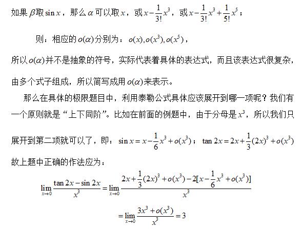 所以在求解极限问题的思路中利用泰勒公式比等价无穷小替换法则更一般、更普遍,在解决问题时往往倾向于接受和使用那些放之四海而皆准的思路和方法,关于等价无穷小替换和泰勒公式的使用,同学们要后期多加练习。