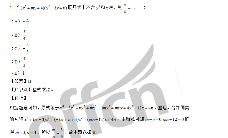20数学考研:考研试题(整式的运算)【每日一练】