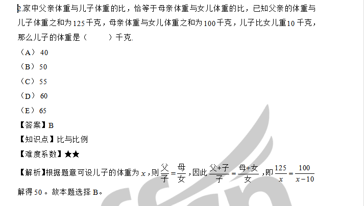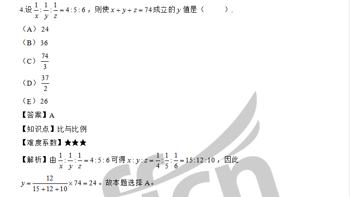 20数学考研:考研数学-比与比例【每日一练】