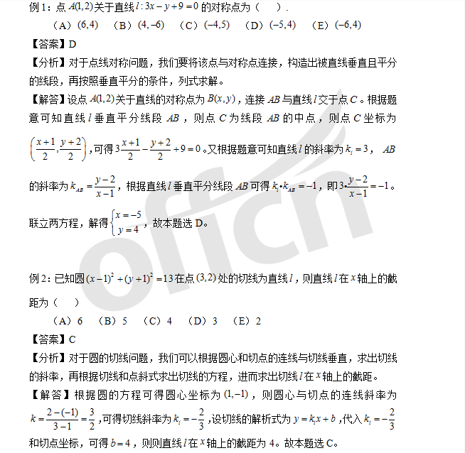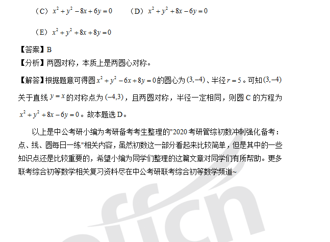 对于管理类联考,大家在复习时,可能会有些迷惑,不知道从何入手,不知道怎么复习。那其实呢,对于每一章都有其相应的一个复习方法,那这次跟随中公考研小编就先来对管综初数解析几何部分的点、线、圆进行一个练习,希望对大家有所帮助。
