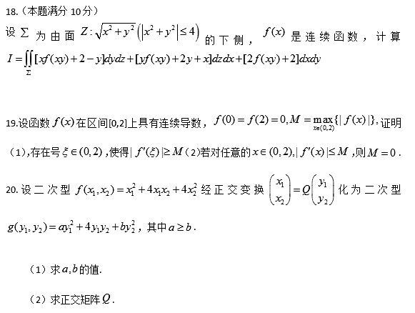 2020考研数学一解答题18-20试题原文(网友版)