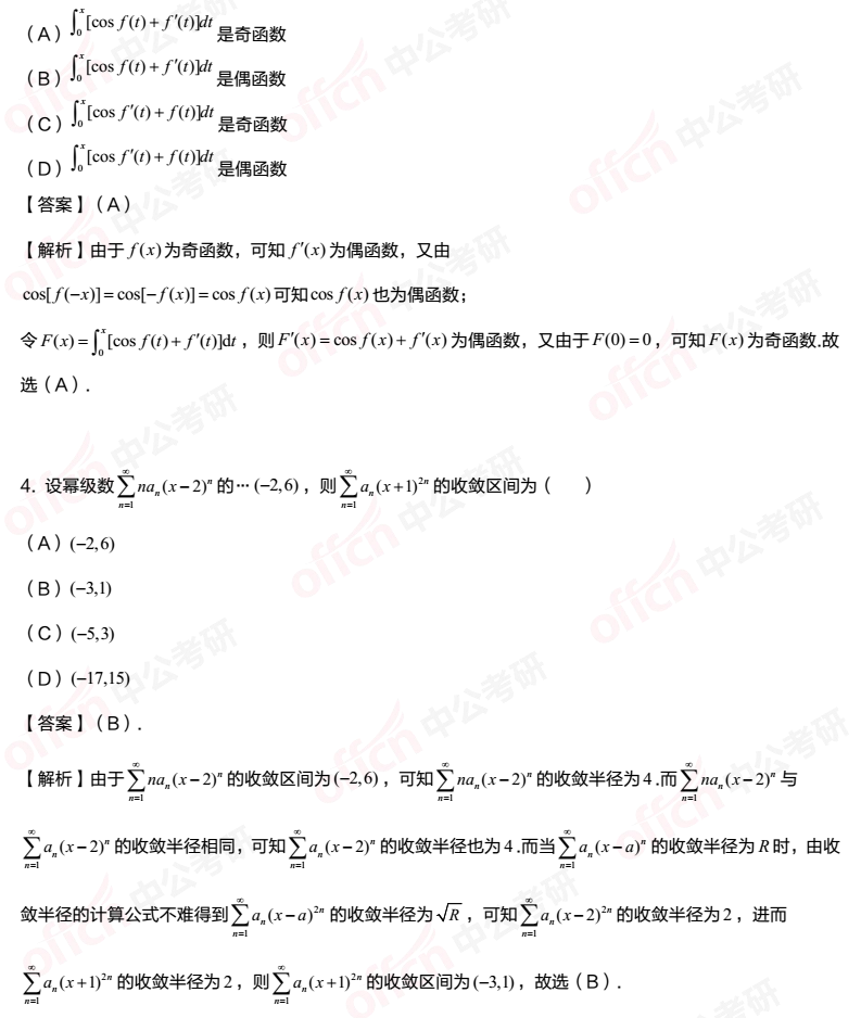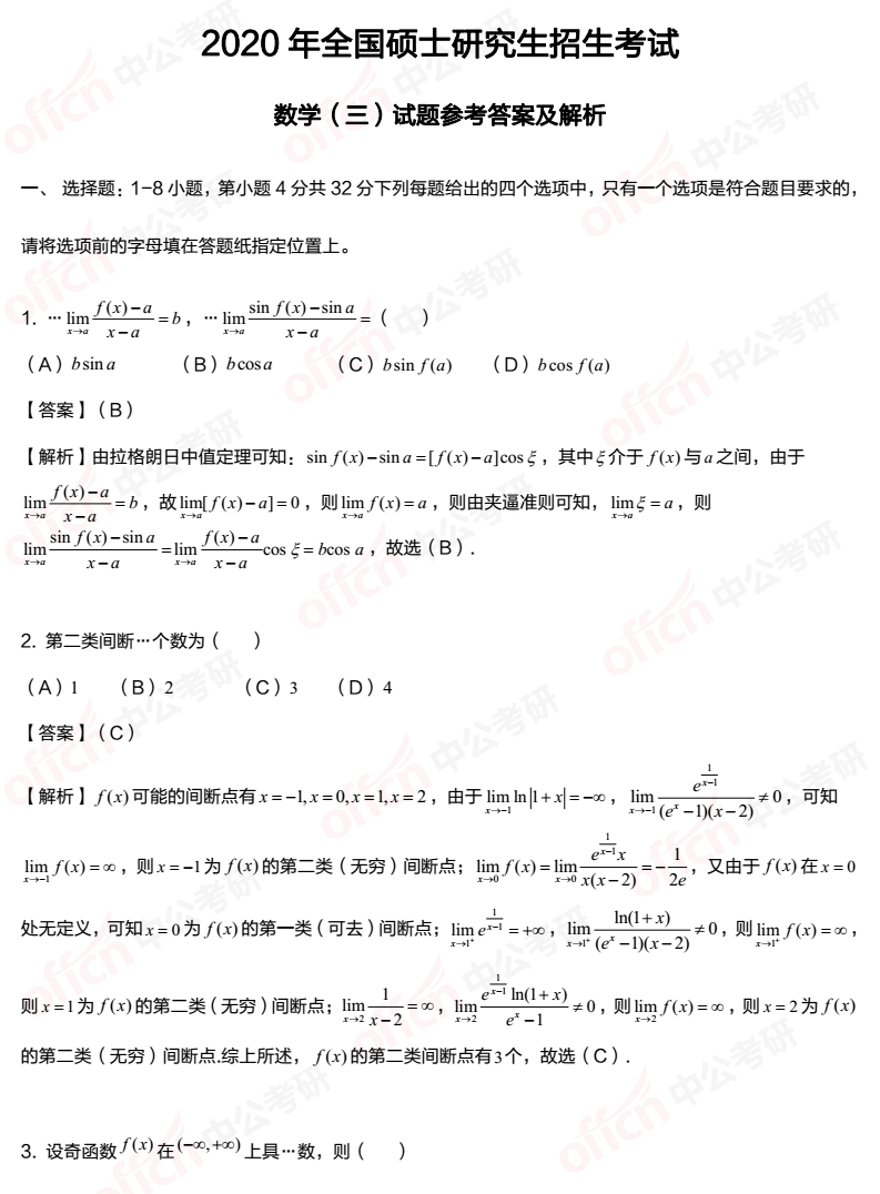 2020考研数学三选择题1-5试题及答案解析汇总(中公考研版)