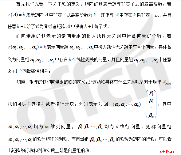 同学们应该都知道秩在线性代数里面占有很重要的位置,很多结论或定理都是以秩为基础展开的,所以理解秩对我们学习线代极为重要,而秩又分为矩阵的秩和向量组的秩,那么二者有什么关系呢?
