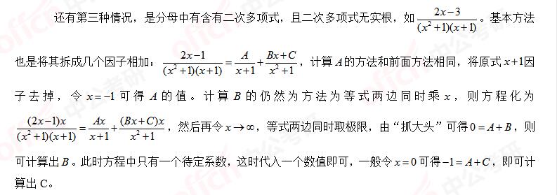 有理函数积分属于积分学中比较常考的题型之一,同学们一定要掌握有理函数如何拆分,以及拆分之后的系数如何求,掌握了基本的方法我们才能在考试中既快又准的完成题目,最终取得理想的成绩。