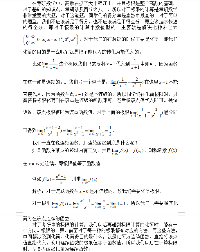 以上是四川考研为考生整理的"2022考研高数关于极限知识点:极限的计算方法(函数的连续性)"的相关内容,希望对大家有帮助,更多考研数学复习信息尽在四川考研数学频道!