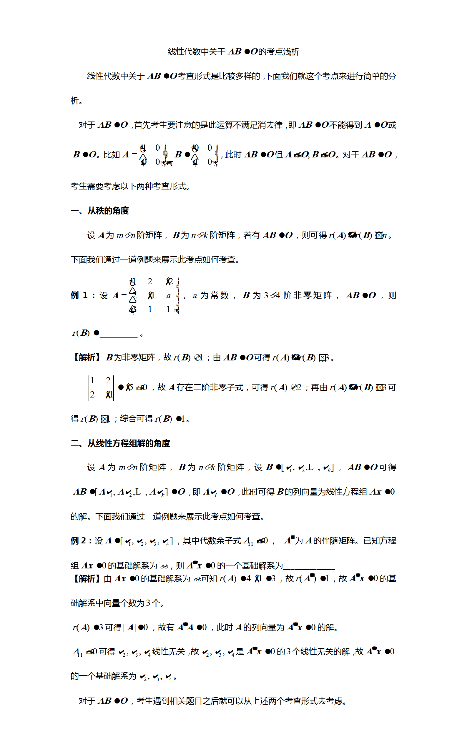 线性代数中关于考查形式是比较多样的,下面我们就这个考点来进行简单的分析。