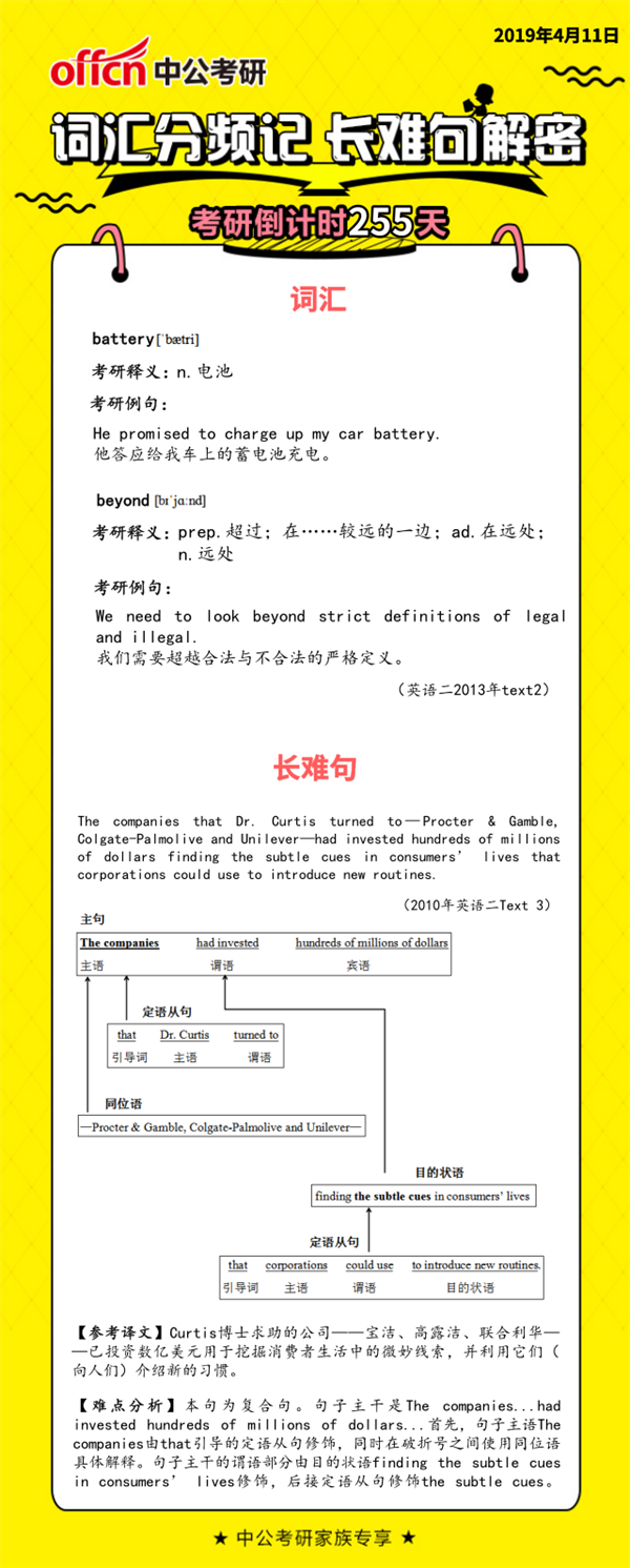 以上是四川中公考研小编为您整理的“2020考研英语:英语词汇分频记及考研英语长难句解密0411“,”预祝每位考生取得好成绩,更多考研常识相关内容尽在四川中公考研英语栏目,中公考研为广大学子推出乐学面授课、VIP一对一等系列备考课程,针对每一个科目要点进行深入的指导分析,欢迎各位考生了解咨询。同时,中公考研一直为大家推出考研直播课堂,足不出户就可以边听课边学习,为大家的考研梦想助力!