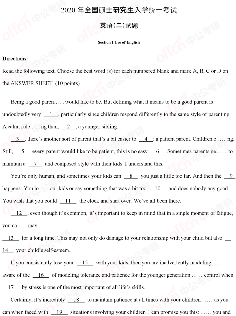 20考研,英语二考试试题答案(中公版)