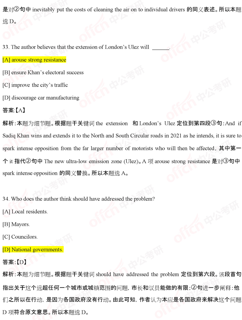 20考研,英语二-考试答案十六(中公版)