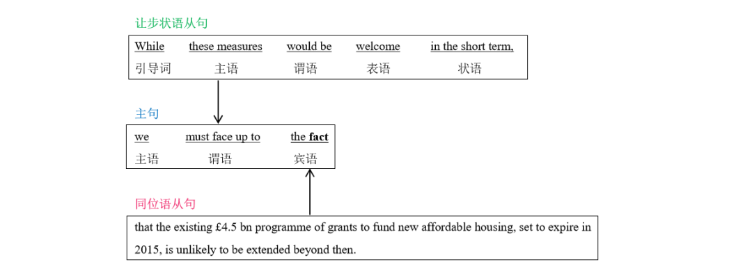 2.While引导的让步状语从句修饰主句we must face up to the fact,主句中fact后接that引导的同位语从句,进一步解释事实的具体内容。