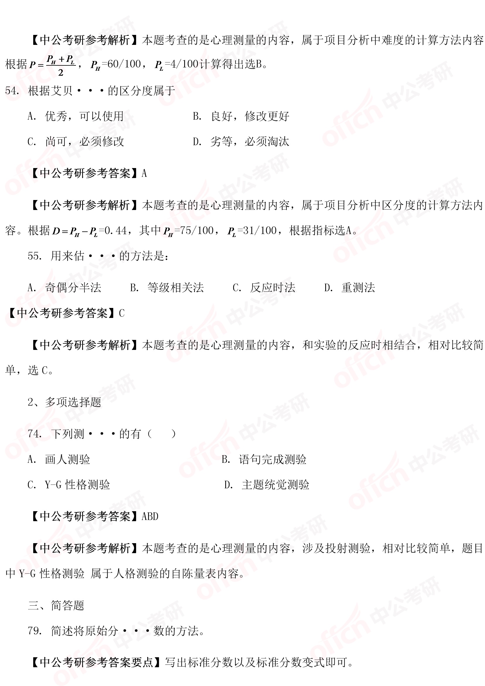 以上是四川中公考研小编为您整理的“2019考研 312心理测量试题及解析”,预祝每位考生取得好成绩,更多考研英语原理相关内容尽在四川中公考研专硕频道!为了考生们更好的复习,中公考研为广大学子推出乐学面授课、VIP一对一等系列备考课程,针对每一个科目要点进行深入的指导分析,欢迎各位考生了解咨询。同时,中公考研一直为大家推出考研直播课堂,足不出户就可以边听课边学习,为大家的考研梦想助力!