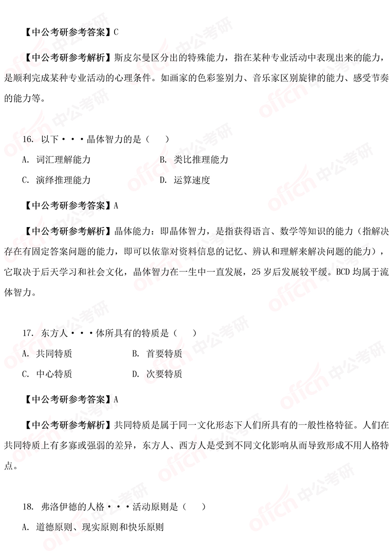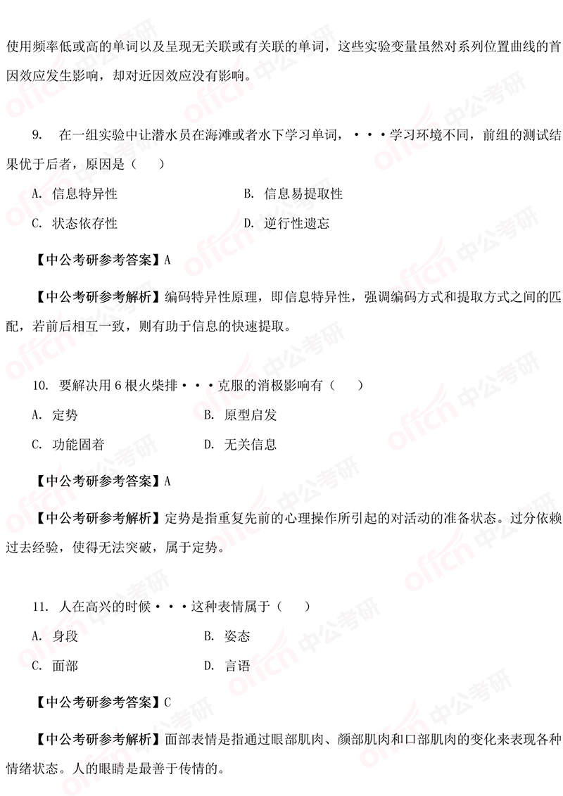 以上是四川中公考研为大家准备整理的“2019考研312心理学导论试题答案及解析”的相关内容。