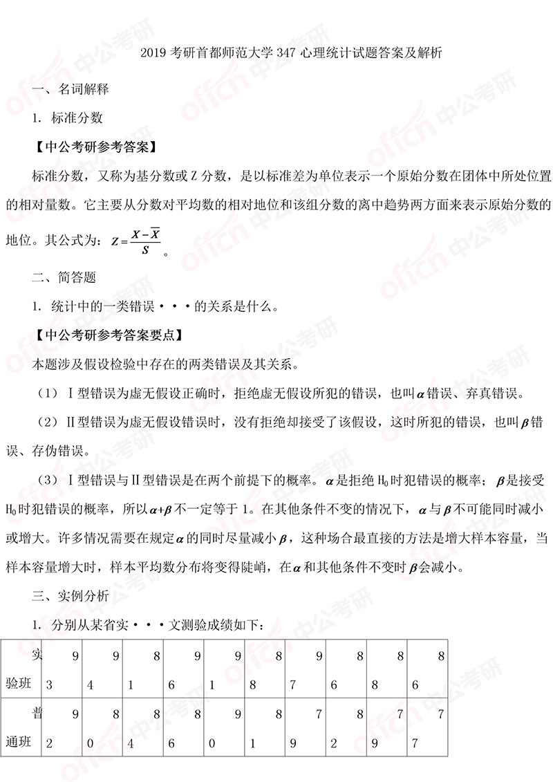 以上是四川中公考研为大家准备整理的“2019考研首都师范大学347试题解析-心理统计”的相关内容。
