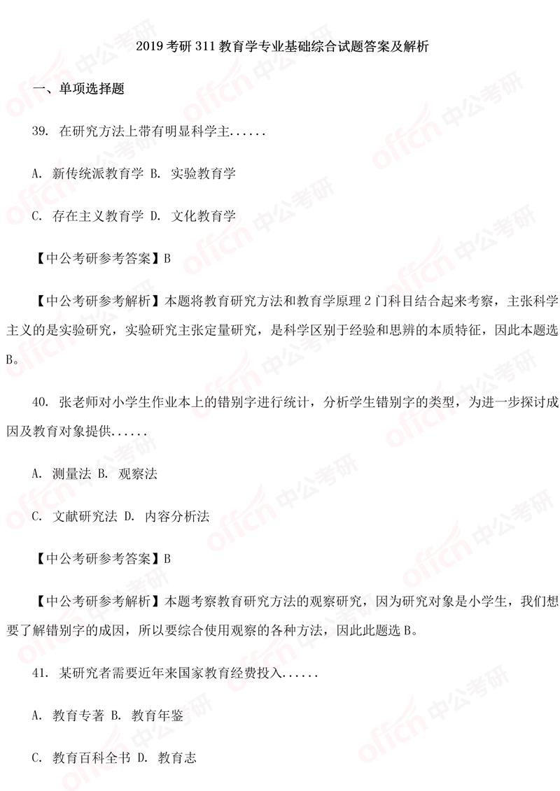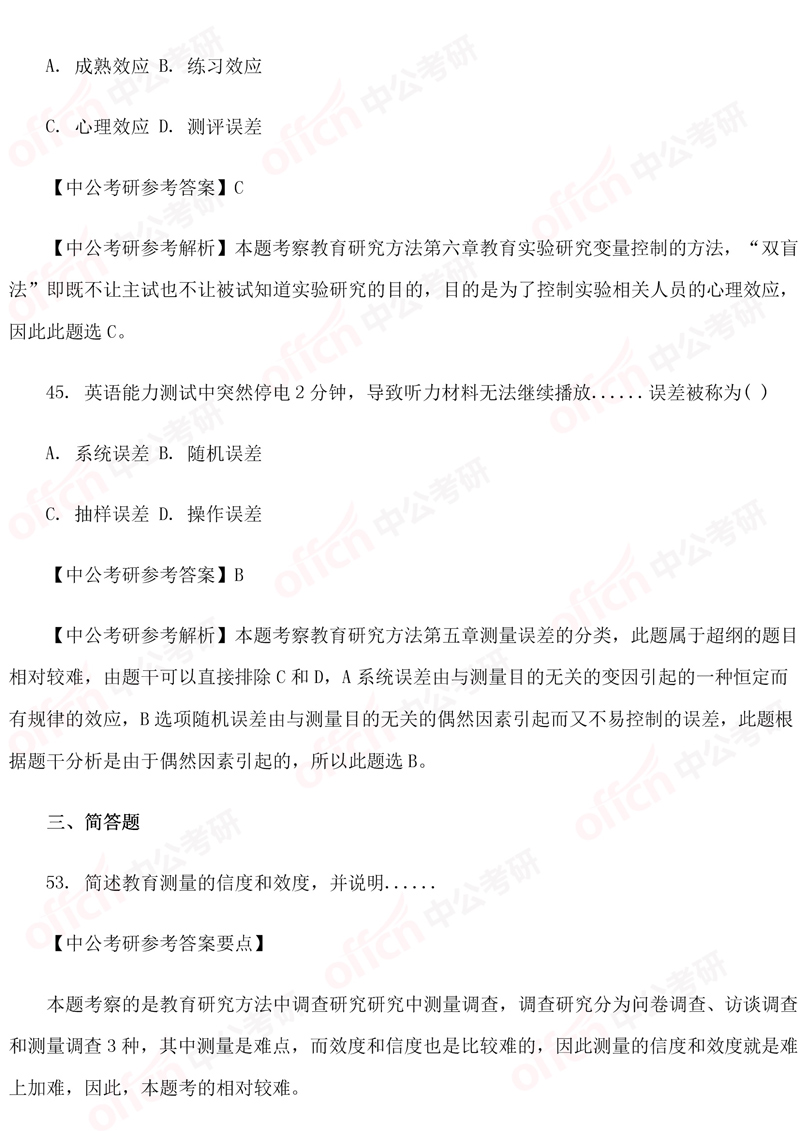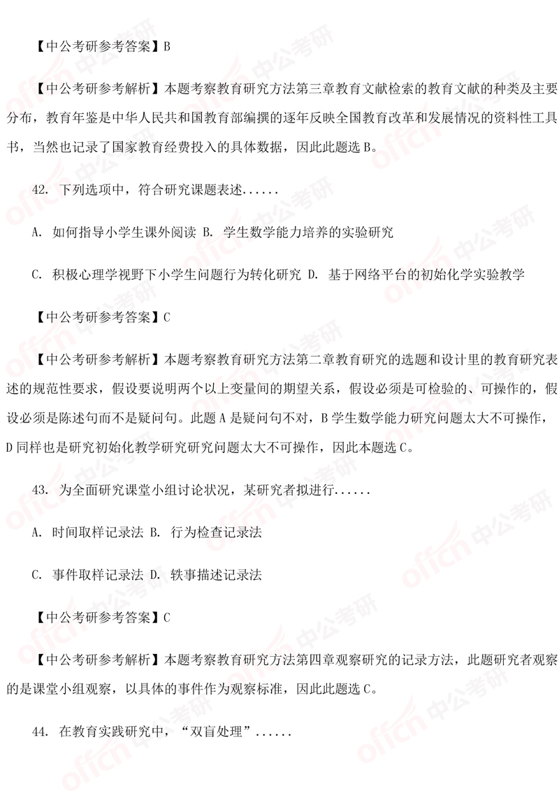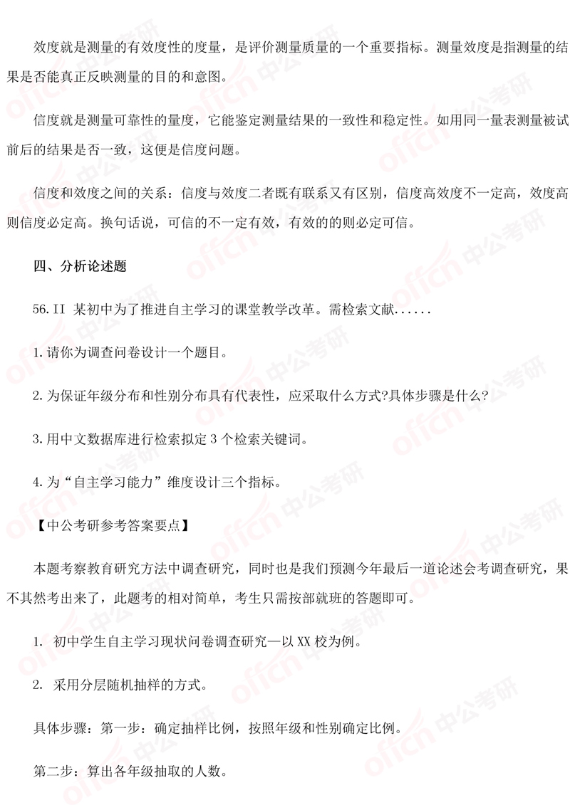 以上是四川中公考研小编为您整理的“311教育学职业基础综合试题答案解析-教育研究方法”,预祝每位考生取得好成绩,更多考研英语原理相关内容尽在四川中公考研专硕频道!为了考生们更好的复习,中公考研为广大学子推出乐学面授课、VIP一对一等系列备考课程,针对每一个科目要点进行深入的指导分析,欢迎各位考生了解咨询。同时,中公考研一直为大家推出考研直播课堂,足不出户就可以边听课边学习,为大家的考研梦想助力!