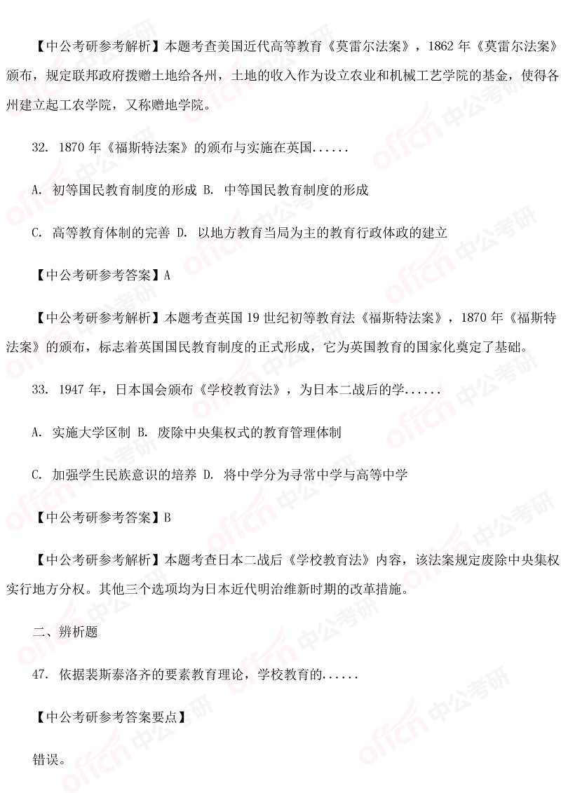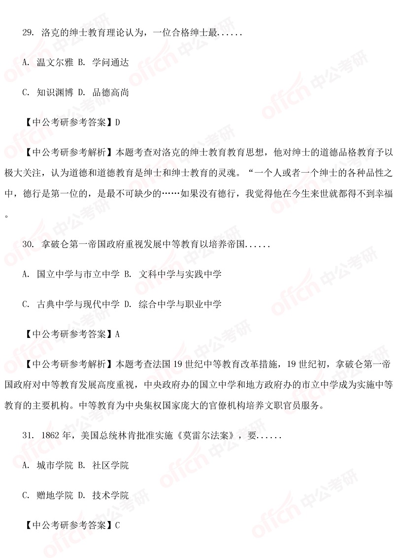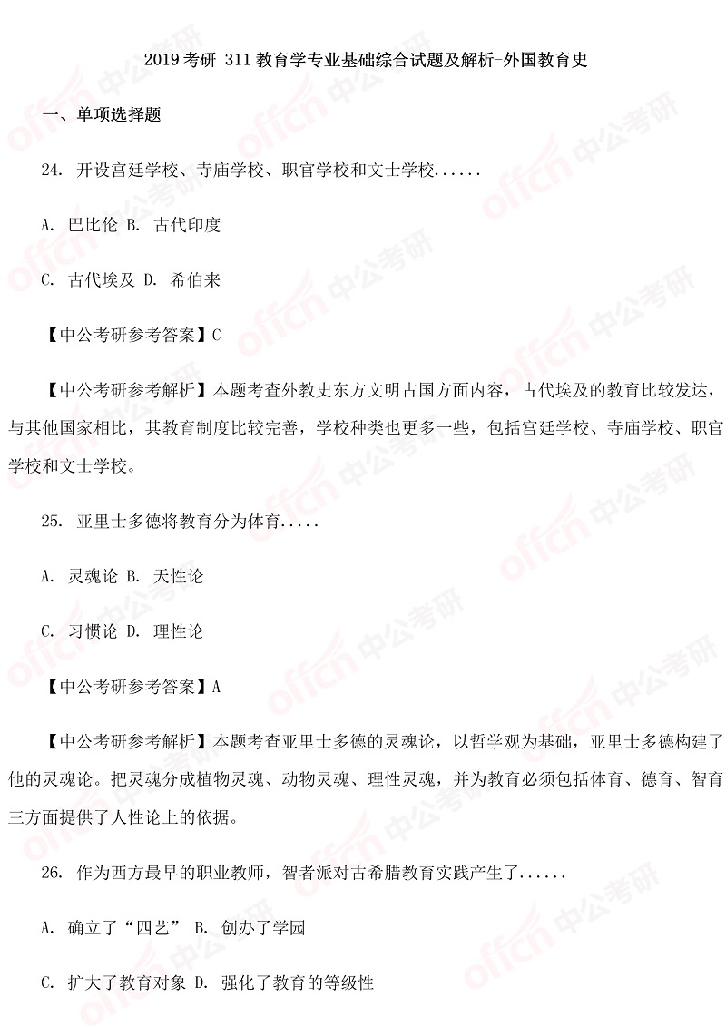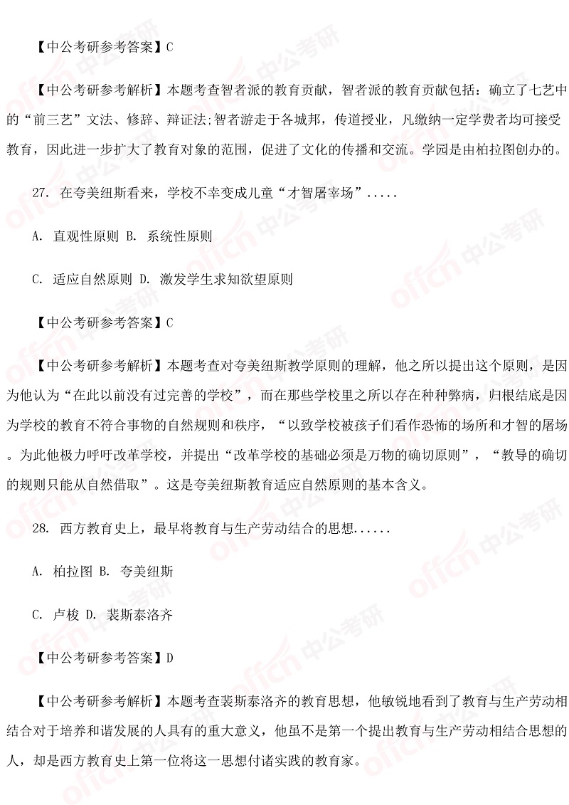 以上是四川中公考研小编为您整理的“311教育学职业基础综合试题及解析-外国教育史”,预祝每位考生取得好成绩,更多考研英语原理相关内容尽在四川中公考研专硕频道!为了考生们更好的复习,中公考研为广大学子推出乐学面授课、VIP一对一等系列备考课程,针对每一个科目要点进行深入的指导分析,欢迎各位考生了解咨询。同时,中公考研一直为大家推出考研直播课堂,足不出户就可以边听课边学习,为大家的考研梦想助力!