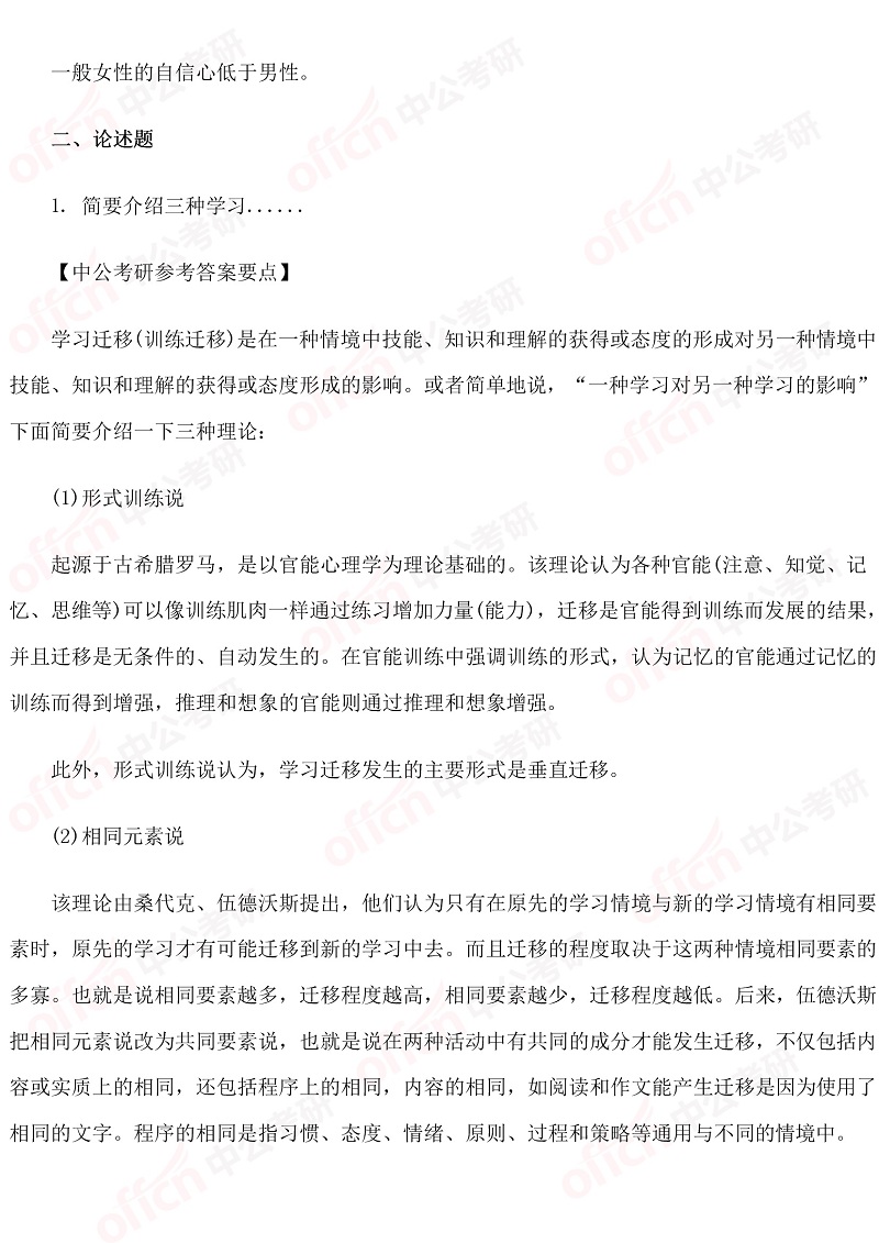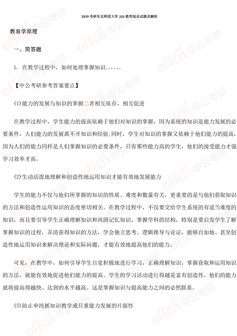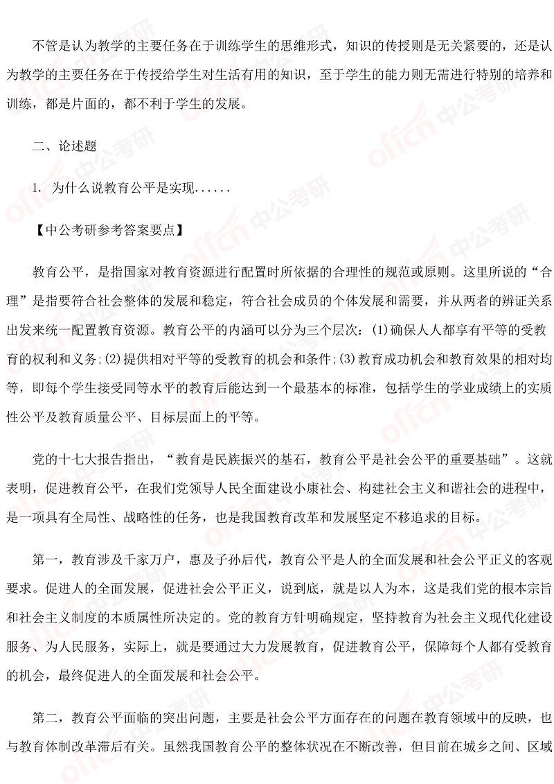 以上是四川中公考研小编为您整理的“2019考研 东北师范大学333教育综合试题及解析”,预祝每位考生取得好成绩,更多考研英语原理相关内容尽在四川中公考研专硕频道!为了考生们更好的复习,中公考研为广大学子推出乐学面授课、VIP一对一等系列备考课程,针对每一个科目要点进行深入的指导分析,欢迎各位考生了解咨询。同时,中公考研一直为大家推出考研直播课堂,足不出户就可以边听课边学习,为大家的考研梦想助力!