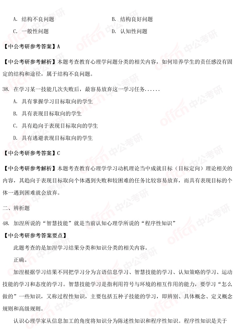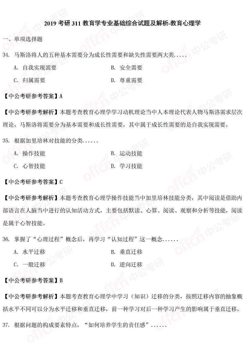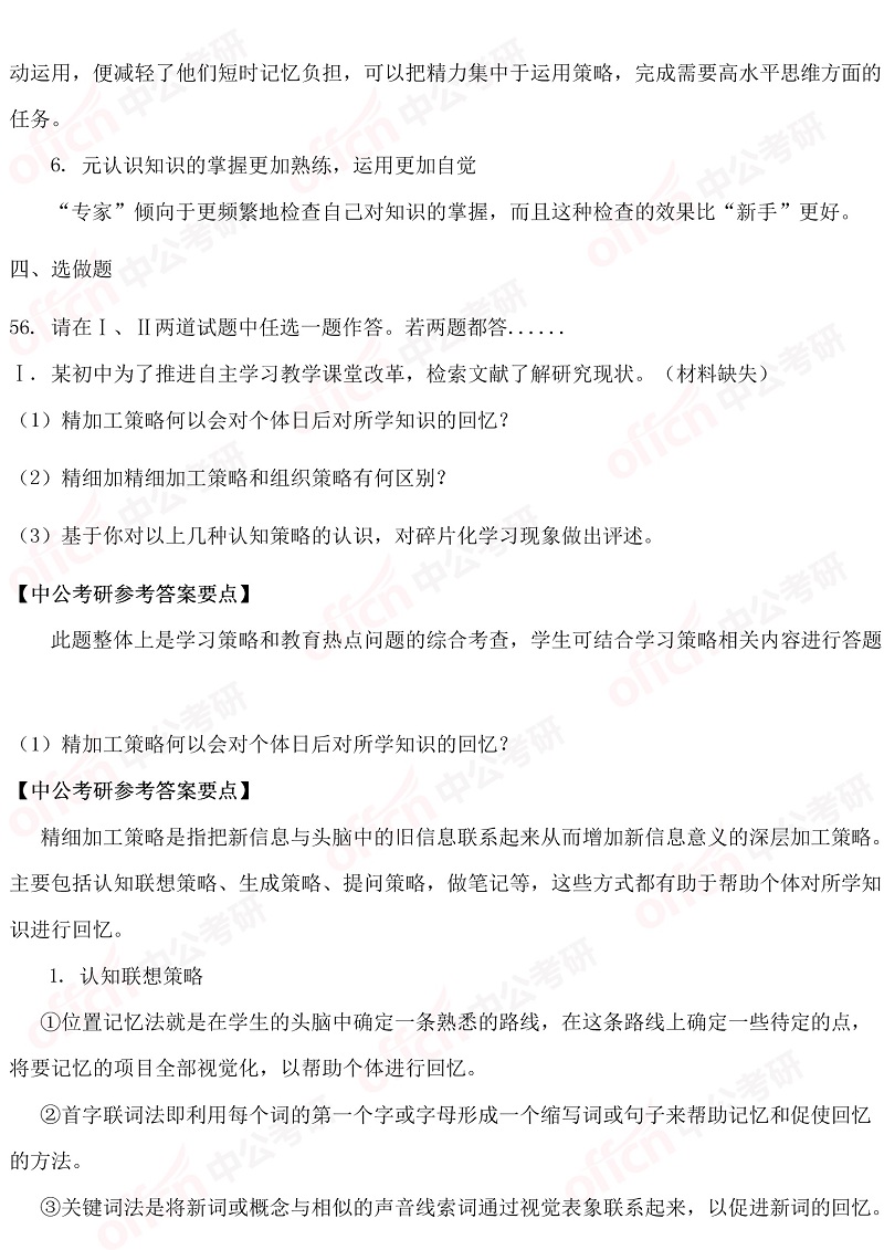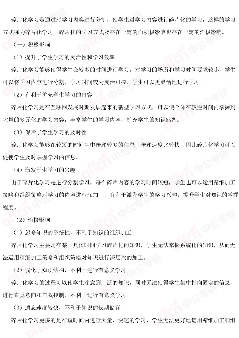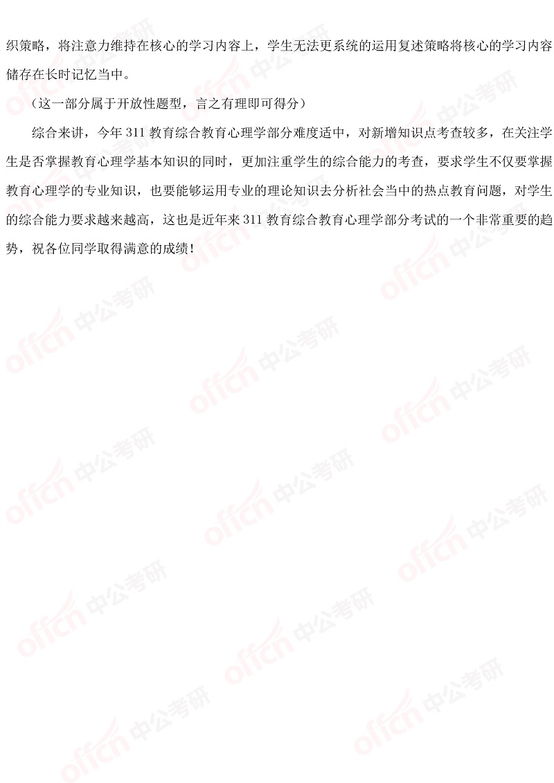 以上是四川中公考研小编为您整理的“2019考研311教育学职业基础综合试题答案及解析”,预祝每位考生取得好成绩,更多考研英语原理相关内容尽在四川中公考研专硕频道!为了考生们更好的复习,中公考研为广大学子推出乐学面授课、VIP一对一等系列备考课程,针对每一个科目要点进行深入的指导分析,欢迎各位考生了解咨询。同时,中公考研一直为大家推出考研直播课堂,足不出户就可以边听课边学习,为大家的考研梦想助力!