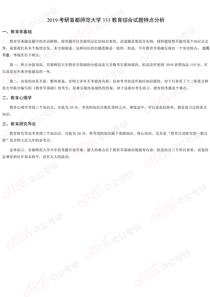 以上是四川中公考研小编为您整理的“2019考研首都师范大学333教育综合试题特点分析”,预祝每位考生取得好成绩,更多考研英语原理相关内容尽在四川中公考研专硕频道!为了考生们更好的复习,中公考研为广大学子推出乐学面授课、VIP一对一等系列备考课程,针对每一个科目要点进行深入的指导分析,欢迎各位考生了解咨询。同时,中公考研一直为大家推出考研直播课堂,足不出户就可以边听课边学习,为大家的考研梦想助力!