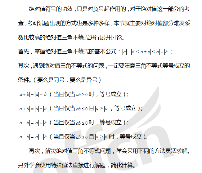 以上是四川中公考研网小编为您整理的“2020考研管综初数:绝对值讲解(绝对值三角不等式)”相关内容,预祝每位考生考试顺利,除此之外,四川中公考研还为广大学子推出2020考研20考研年集训营、20考研周末乐学班系列备考专题,针对每一个科目要点进行深入的指导分析,还会根据每年的考研大纲进行针对性的分析哦~欢迎各位考生了 解咨询。