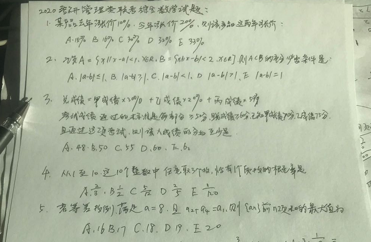 下一篇:2020考研管综初数6-10试题及答案(网友版)
