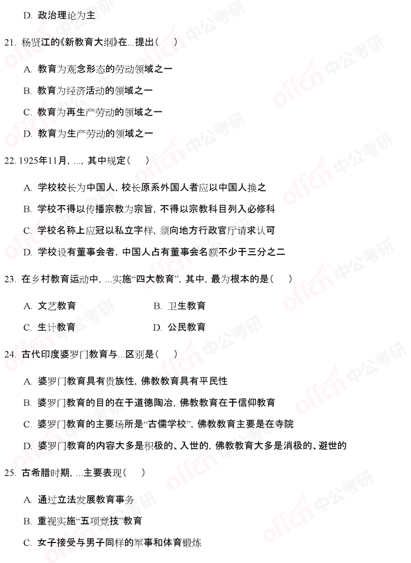 2020考研初试已正式开始,中公考研网初试后为大家整理发布“2020考研,311教育学基础综合试题单选题5(中公考研版)”考研试题内容,中公考研各科研究院老师将对2020考研试题进行试题变化及难度解析,帮助大家做好考后准备、从容迎战后续复试调剂!【考研复试攻略】/【调剂备战指南